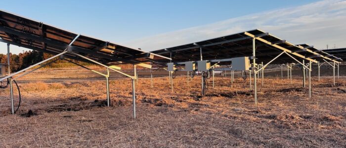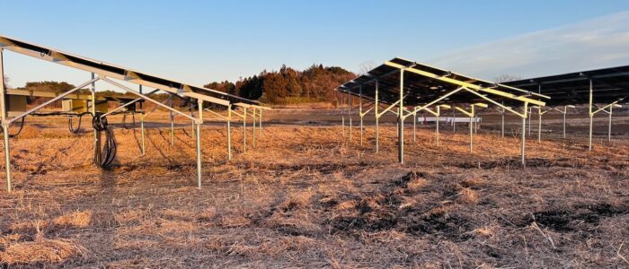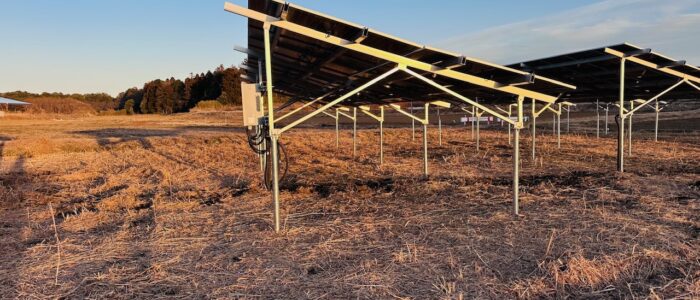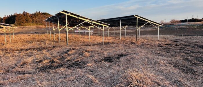 | 設備内容 | 架台 杭打ち式アルミ架台 パネル ロンジー 590w 112枚 66.08kw 製品保証 (10年品質保証・25年出力保証) パワコン 田淵電機 9.9kw 5台 49.5Kw |